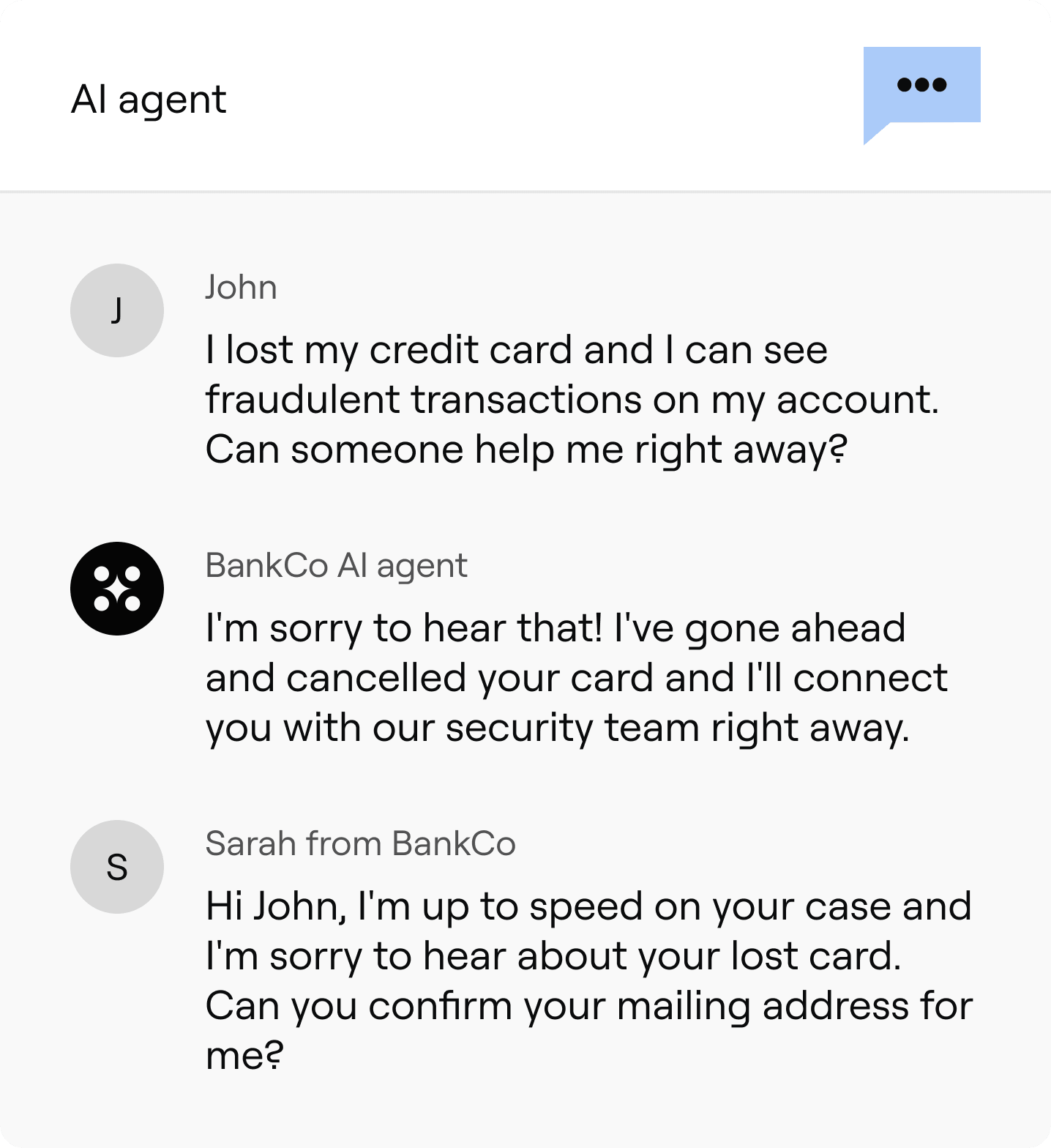Intelligently route customers to human agents at the right moment while providing full context and customer data.